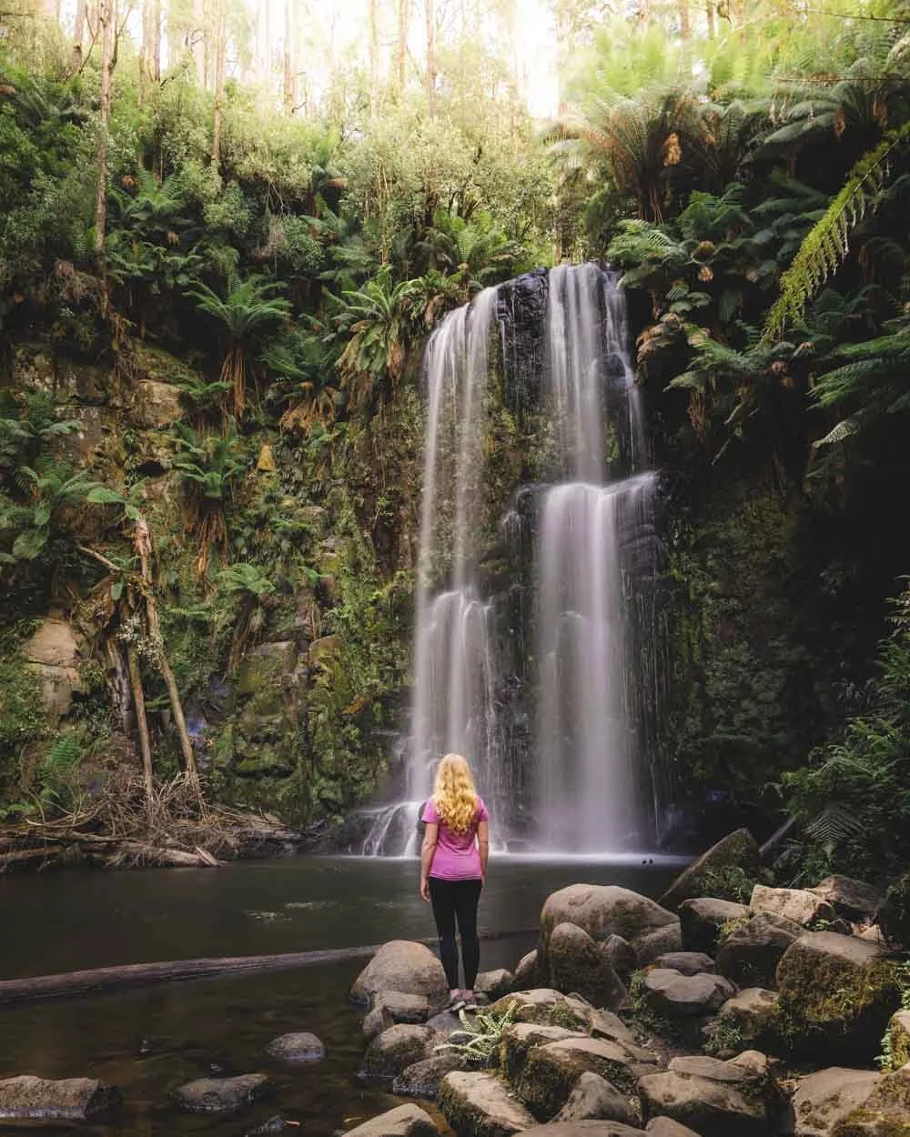Beauchamp Falls is one of the most spectacular of the waterfalls close to the Great Ocean Road. The shape of the falls is absolutely beautiful and it’s surrounded by giant fern covered cliff walls which give it a dramatic feel.