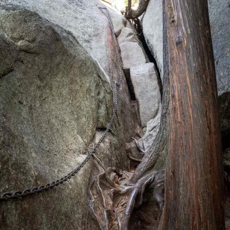 The first two sets of chains at the second peak are there to help you get across the narrow paths. They’re not too hard, but the chain makes it easier for your balance and staying on the track. Then comes the hardest part of the trail.
