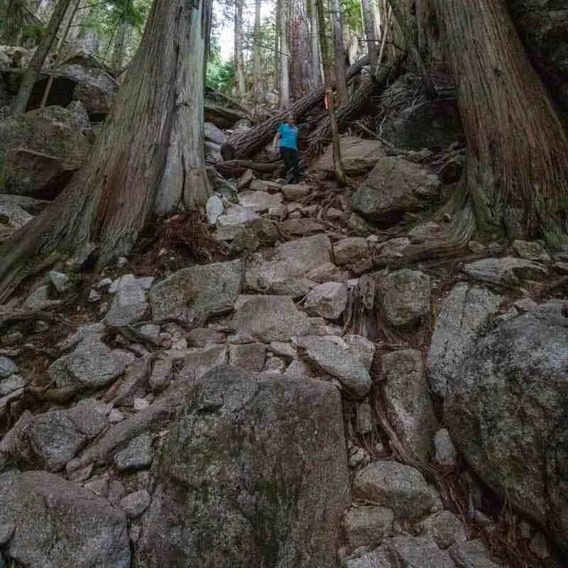 We do not recommend hiking the Chief in wet conditions, what is grippy rock in dry weather can quickly become slick and dangerous.