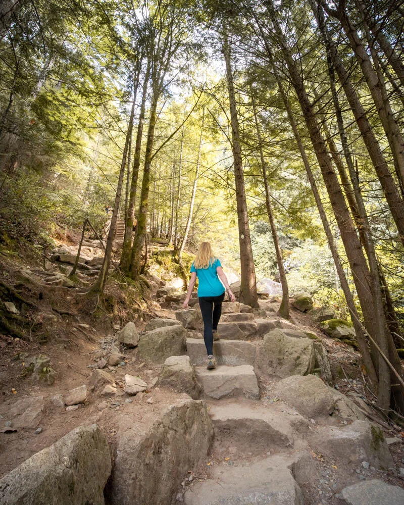 The hike to all peaks starts from the same path which is about 100-200m from the car park. Your introduction to the Chief hike is manicured (there’s some nice sets of wooden stairs to use) but even these aren’t easy going as there are several staircases in a row.