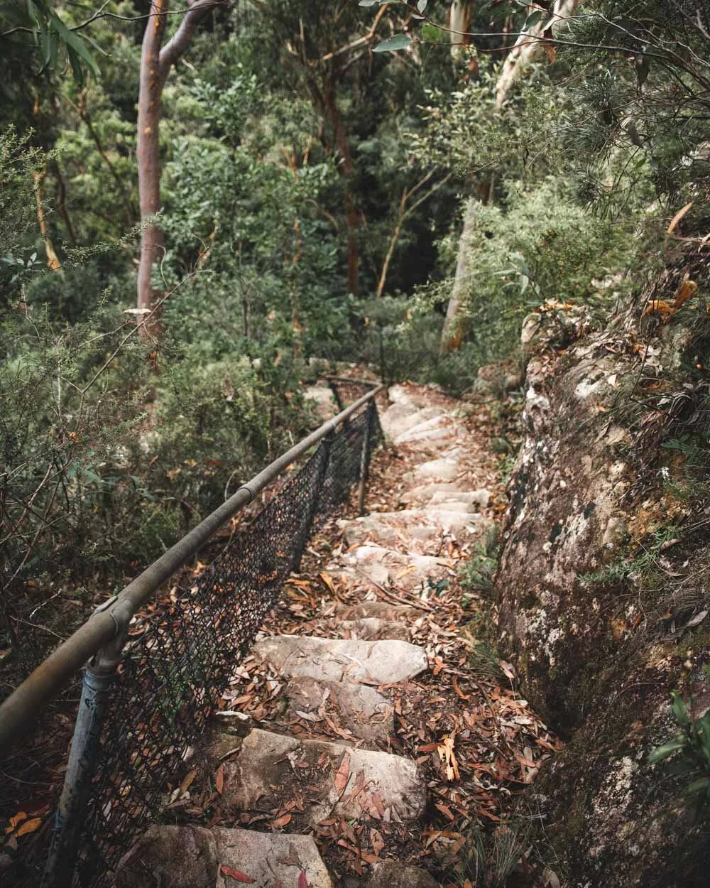 Back on the main trail and you’ll begin descending through the bush towards Dantes Glen. It’s mainly on well formed staircases, although the odd step can be uneven, and there’s a handrail if needed.