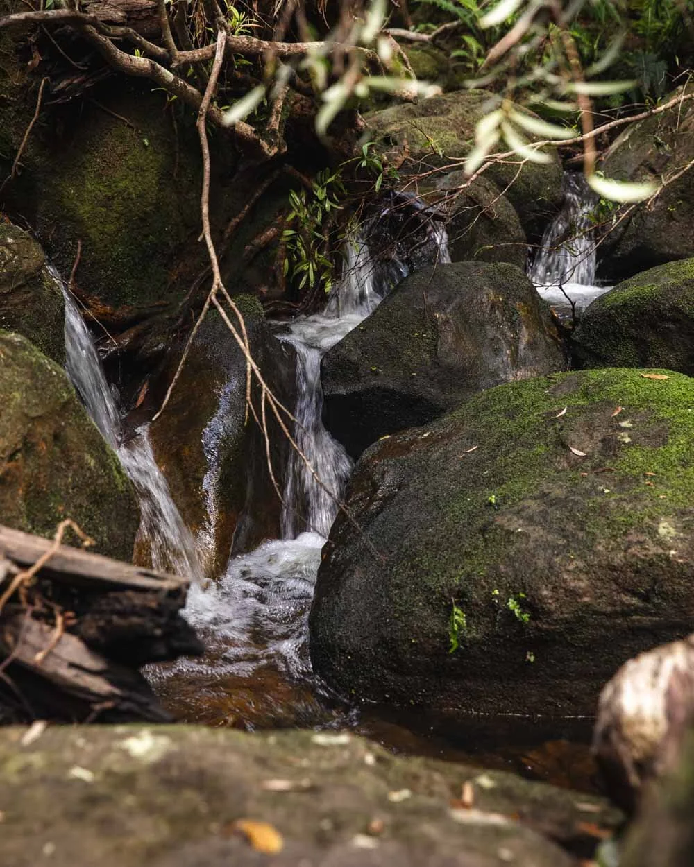 You’ll quickly come to a sign that shows you the path ahead is a dead end and you head right, over the creek (using the large boulders to cross), and along a few stepping stones to St Michaels Falls.
