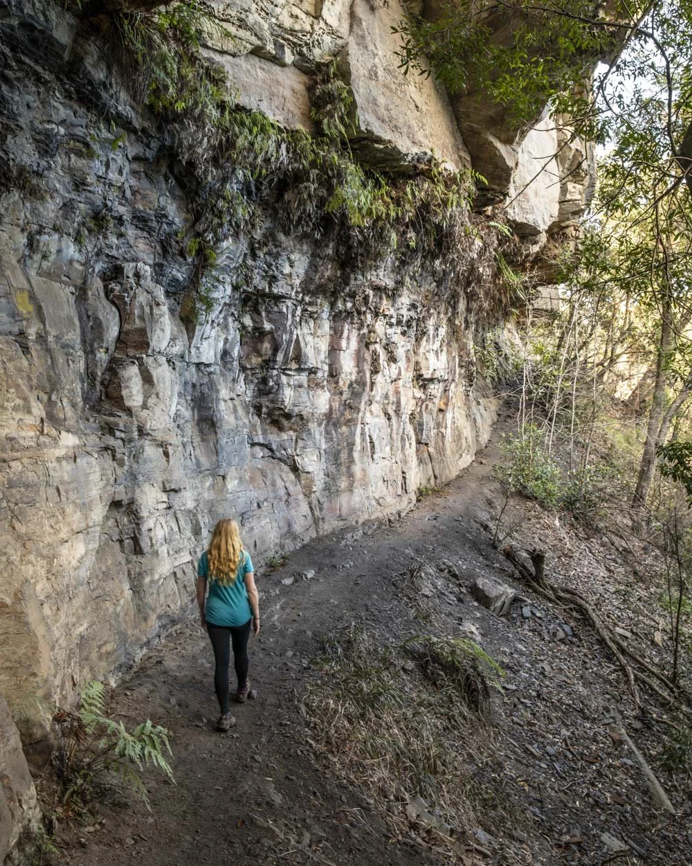 The track then heads back into the bush and uphill towards the cliffs. The path heads alongside the cliff wall which offers gorgeous valley views.