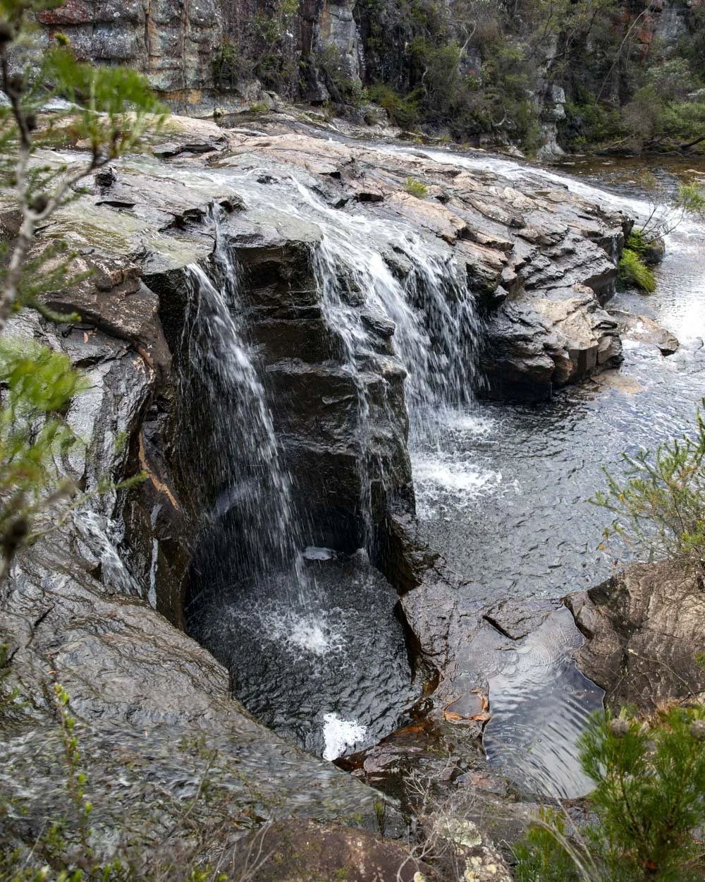 Cross the creek (this may be a wet boots/boots off situation if visiting after heavy rain). You can then carefully walk out to the top of the falls and look down into the pool - it’s unfenced and could be wet and slippery, so of course don’t go too close!
