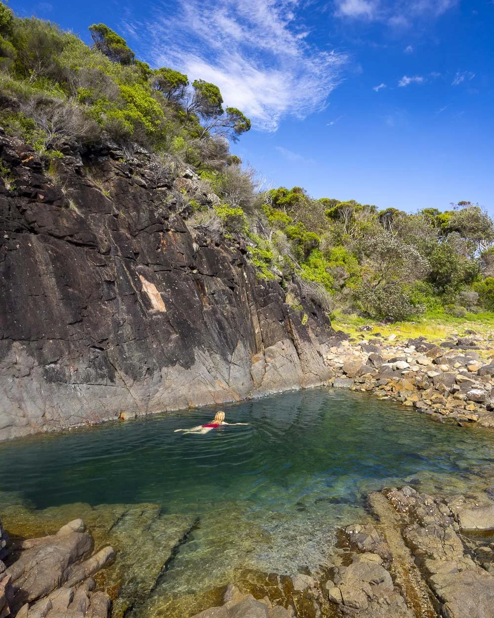 We visited in the Easter holidays and got it to ourselves for a while, but there were people there just before and after us. Going early would probably see you get it to yourself, but if you do arrive to find it busy, you might want to try the lesser known Fingal Bay Rockpool, which is also only a five minute walk from the nearest car park.
