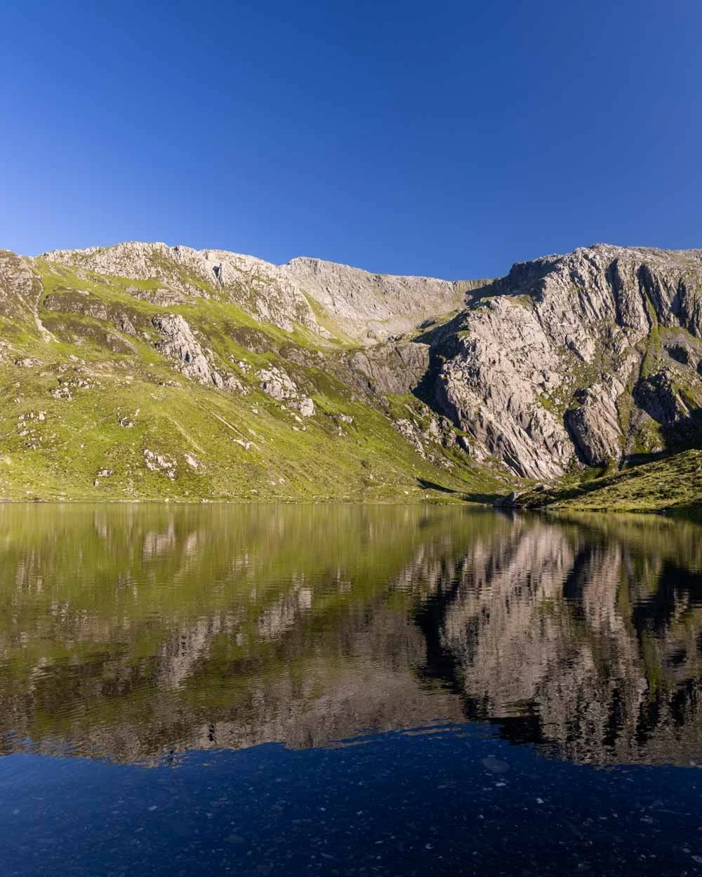 After a further 570m, you’ll reach the gorgeous Llyn Idwal (900m from the car park).