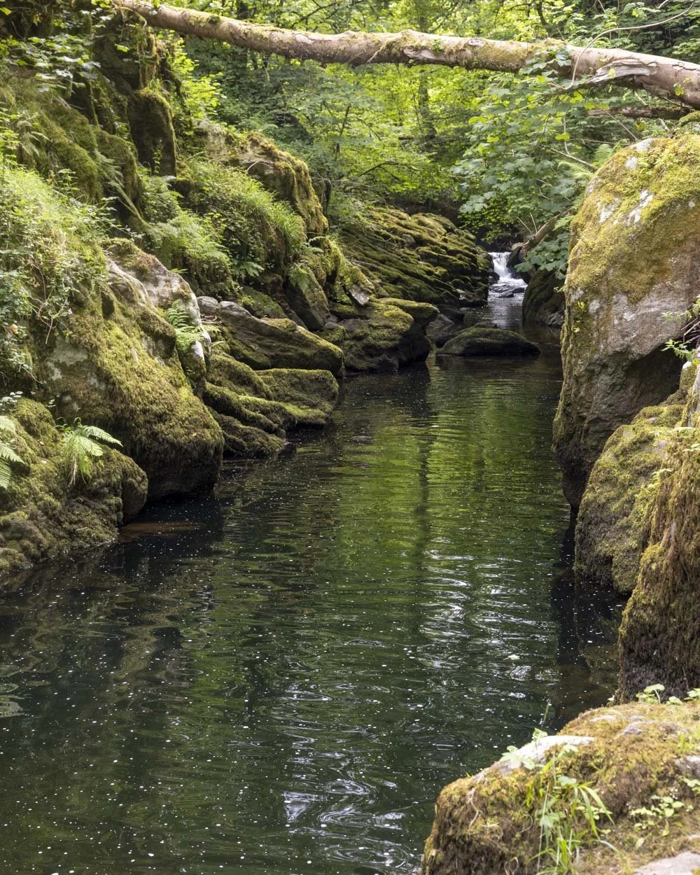 Long Pool has a fairytale like quality to it with narrow moss covered gorge walls, tall trees and shimmering green water.