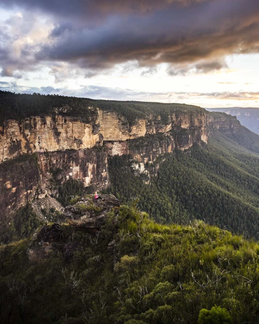 From here you can see across the Grose Valley, with Lockleys Pylon on the left, and Perry’s Lookdown and Mount Banks in the distance. These are the kind of viewpoints we love, no fencing or manicuring, just wild and expansive in all directions.