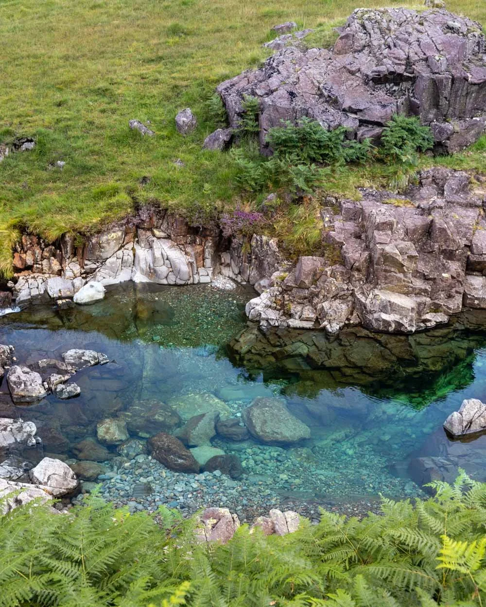 If you’re visiting in summer the cliffs beside both pools are covered in heather, which adds yet more magic to somewhere that already looks like a Disneyland creation (but better!).